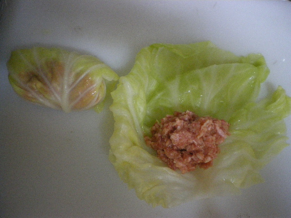 更加入用高麗菜的葉子包A、15~20分煮、就完成了
